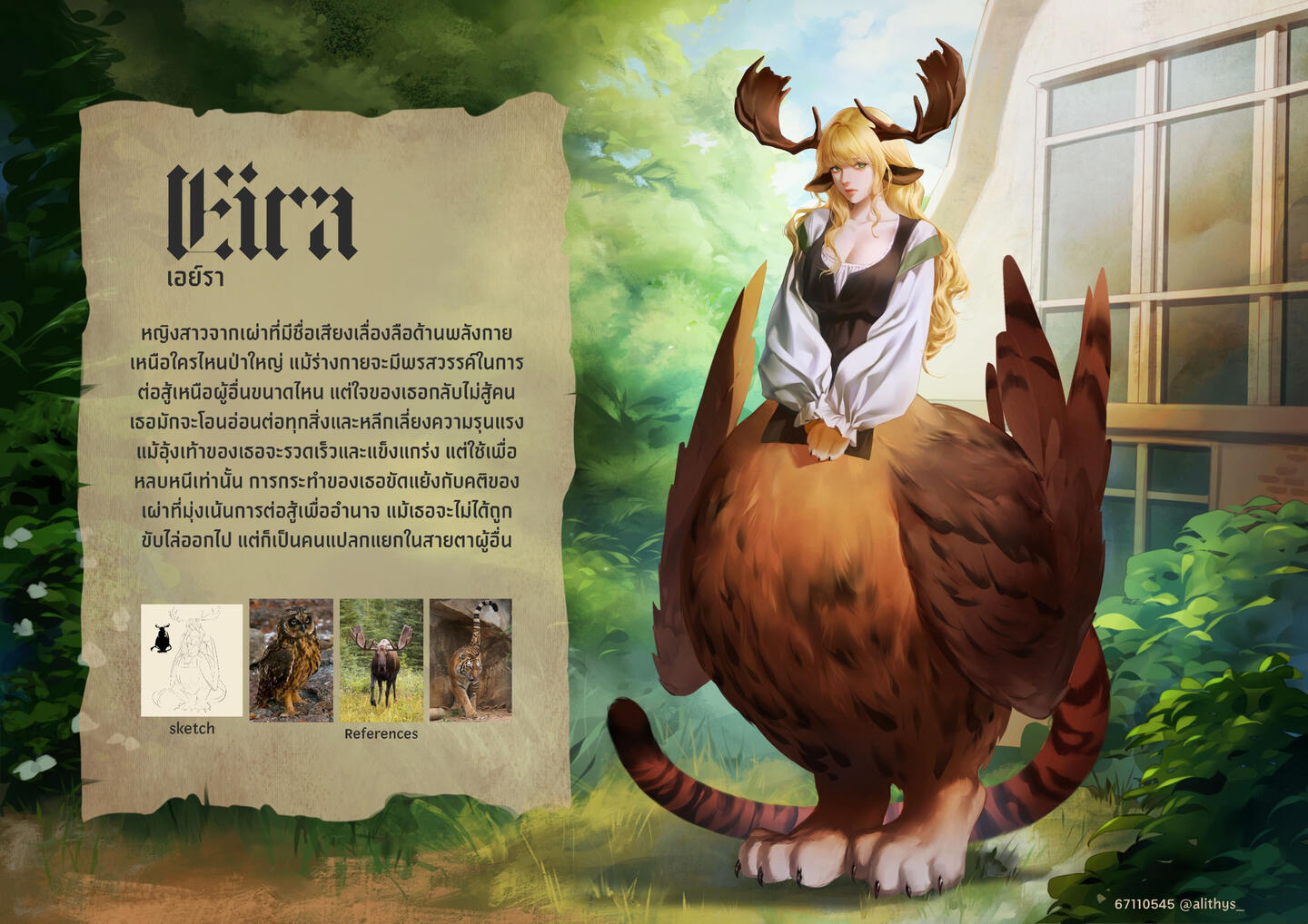 รายละเอียดตัวละคร: character ref sheets(หน้าตา ทรงผม สีตา เสื้อผ้า บุคลิก ฯลฯ)